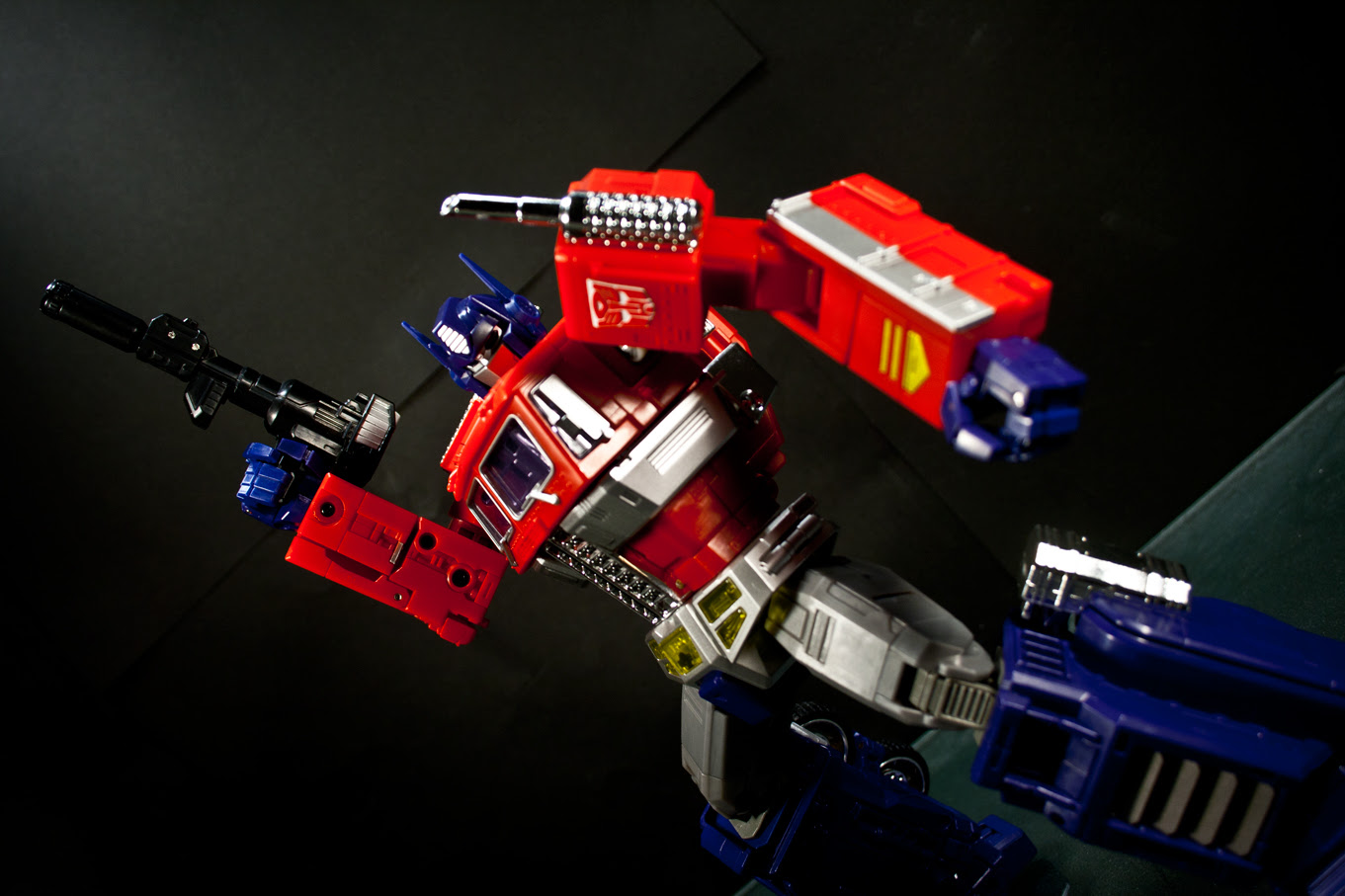 不 過回想80年代末,90年代初的時候,當手裏拿著不知道是什麽版本的G1柯柏文的感動,應該是大家都有的記憶吧?知道幾年前跑路的時候,偶然拿出來看看, 拳頭..沒有了,槍,沒有了...文仔..還好啦..車廂,主體,還是有的...多少回憶阿...以下重溫只針對以卡車車頭的接近G1形象爲主...